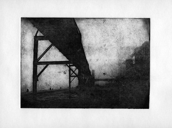 A series of prints created around the theme of Cork's disappearing docklands. Printed using the Riston method, transferring photographic imagery to intaglio plates. Printed in Cork Printmakers, Wandesford Quay, Cork.